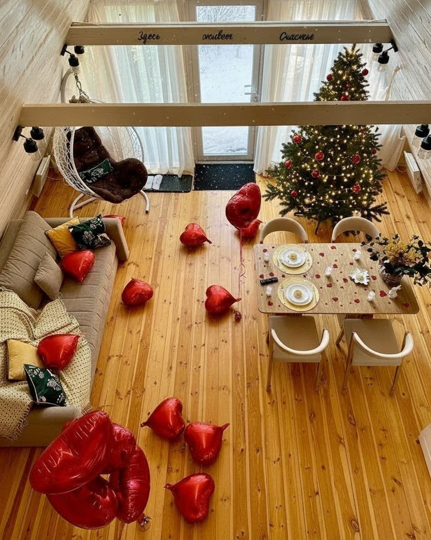- Зимняя атмосфера — новогодний декор, елочка, фотозоны, уют и тепло