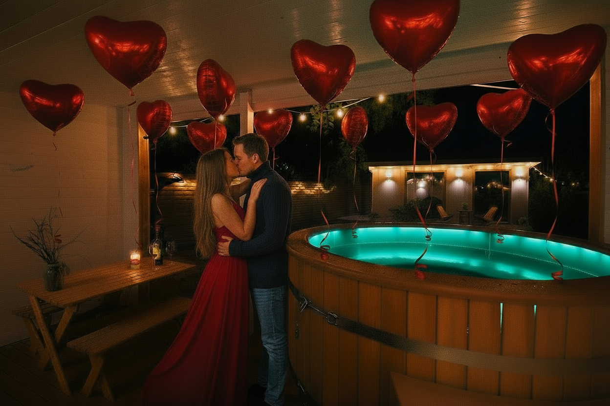 Вечером в домике можно устроить романтический ужин при свечах: накрыть стол, добавить тематические декорации и фонари, приготовить любимые блюда или заказать доставку. Камерный формат позволяет превратить праздник в красивый личный сценарий: маски, бокал вина и еда (которую можно приготовить самим или заказать из ближайшего кафе) создадут настроение, которого не найти в шумных ресторанах.